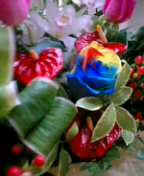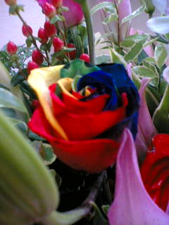 その中にとても変わったチューリップが!造花でなく本物です。色水をうまく吸わせるのかなぁ?
