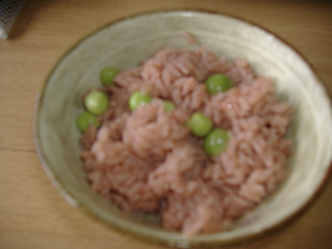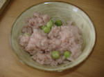 仲居の先輩に教えてもらってお赤飯風豆ご飯を炊きました。